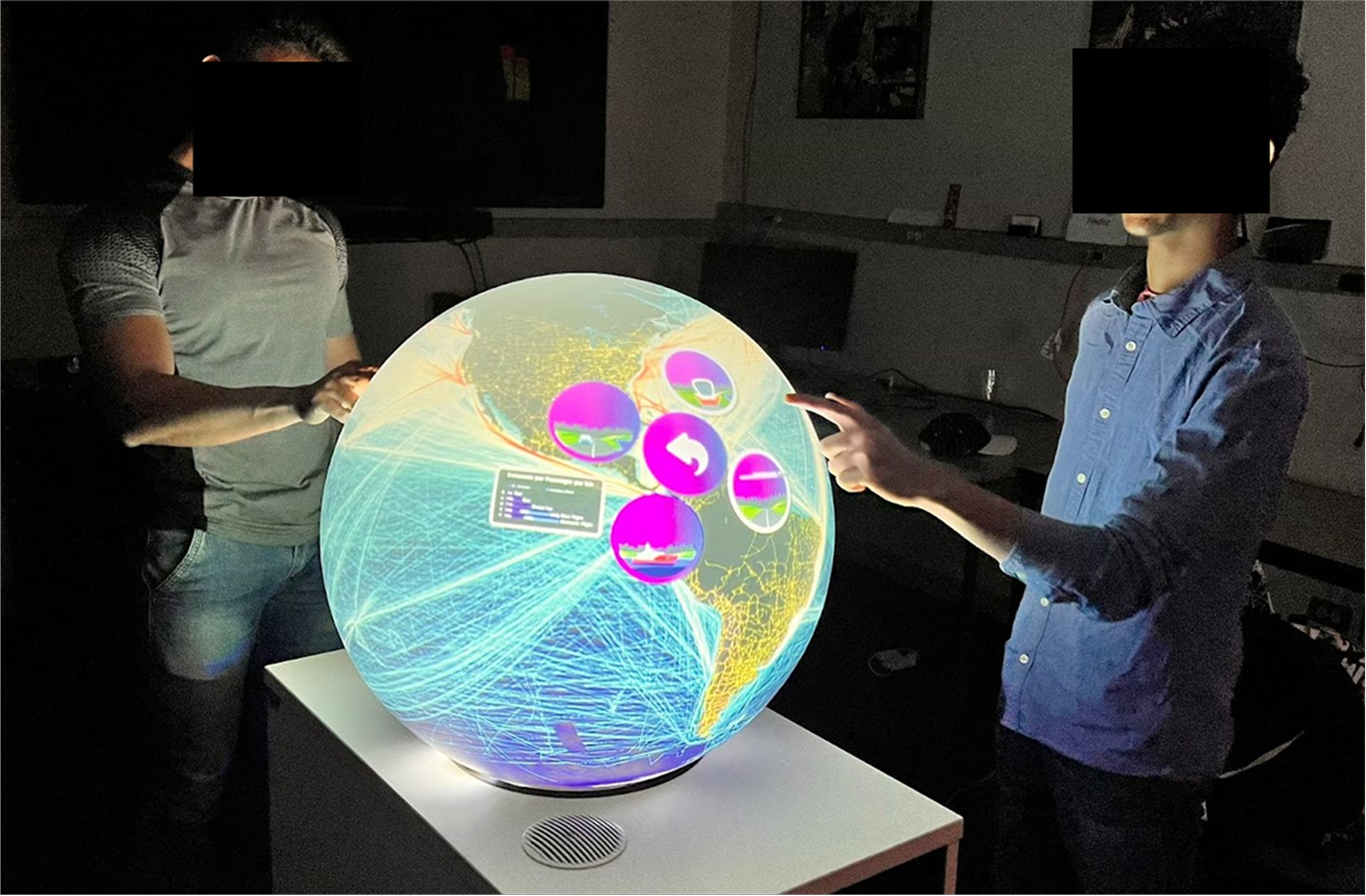 The overarching goal of Geo-Data-On-Sphere project is to understand how to design multi-touch spherical display applications to let Earth Science students interactively explore and learn from geoscience educational data visualizations.